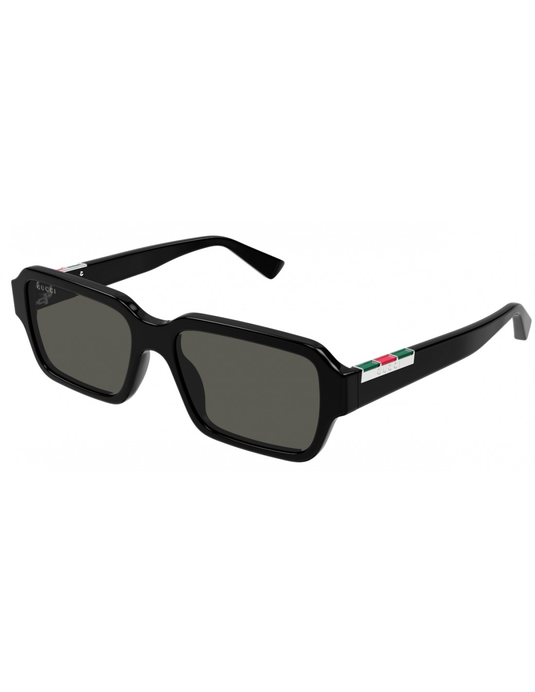Modelli in acetato dal look commerciale e di tendenza, completati da un inserto in metallo lungo il bordo superiore dell’asta. Forma rettangolare stretta. Logo con scritta Gucci inciso al laser sulla targhetta in metallo.