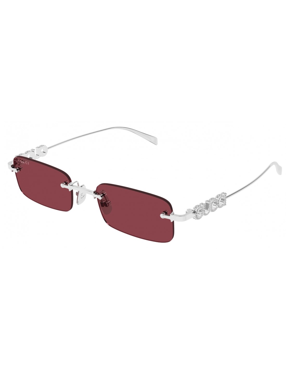 Modelli in metallo caratterizzati dal logo con scritta Gucci tridimensionale che va ad arricchire l’asta. Forma glasant maschile.
